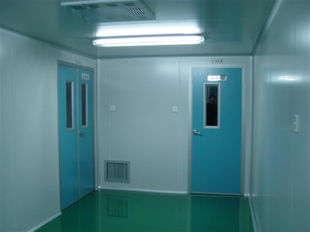 1.洁净室墙、顶板材料一般采用50mm厚的夹芯彩钢板、净化专用的氧化铝型材制造。门采用净化密闭门,窗采用铝合金玻璃固定窗。